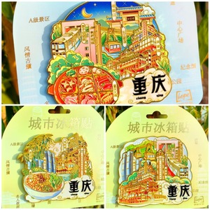 重庆8D立体城市洪崖洞冰箱贴树脂金属旅游文创礼品纪念品琥珀文创