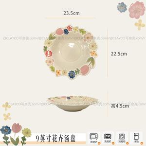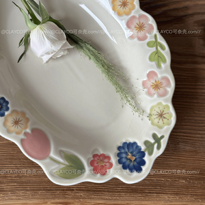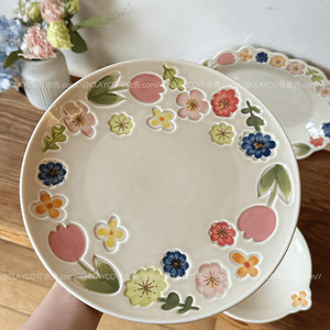 陶瓷花卉系列日式复古陶瓷餐具高颜值釉下彩餐盘家用饭碗水果盘