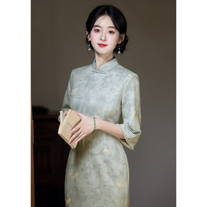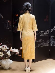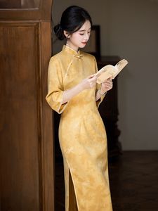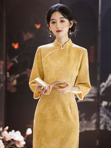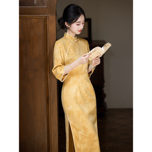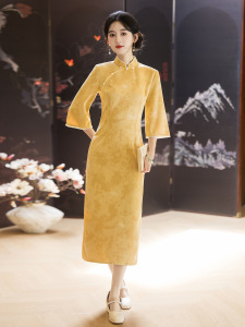 洛士博年轻款秋季黄色鹿皮绒旗袍女漂亮独特国风日常显白装