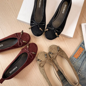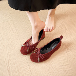 软底浅口蝴蝶结单鞋平底鞋芭蕾玛丽珍鞋女内增高懒人瓢鞋
