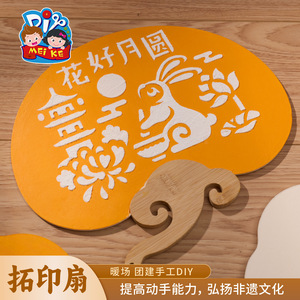 2025新款中秋团圆拓印雅扇手工diy儿童制作材料国潮节庆手作扇子