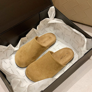 法式穆勒鞋女半包凉拖鞋夏季新品牛翻皮纯色圆头平跟软皮拖鞋女