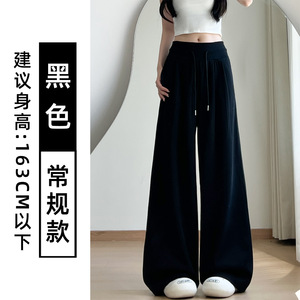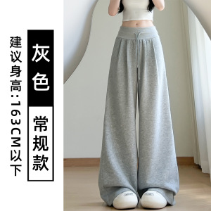 军绿色休闲阔腿裤女秋季2025新款低腰垂感慵懒风宽松直筒运动卫裤