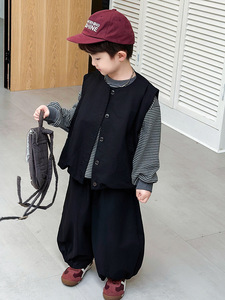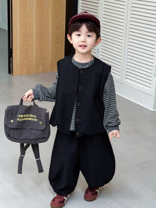 男童秋套装2025新款酷帅宝宝马甲三件套休闲打底衫儿童春秋款衣服
