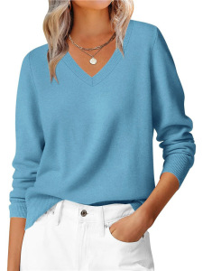 欧美跨境2025秋冬休闲套头经典款时尚气质长袖V领大码针织打底衫