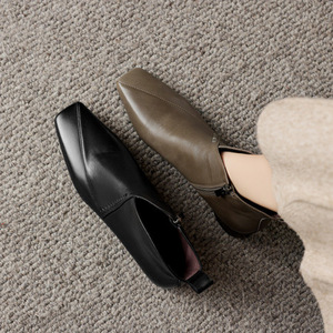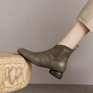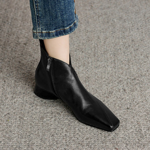 英伦风羊皮短靴女秋冬2025新款小裸靴真皮靴子马丁靴粗低跟瘦瘦靴