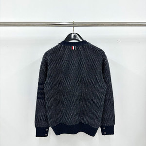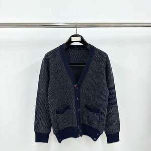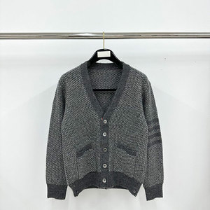 23FW 高品质秋季新款男女同款四杠条纹长袖V领粗针雪花针织衫