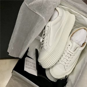 羊皮版~系带真皮圆头厚底增高休闲小白鞋女板鞋时尚松糕鞋饼干鞋