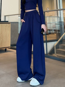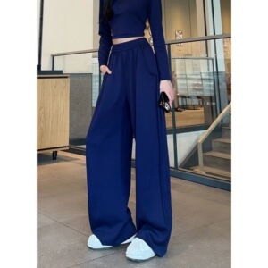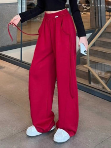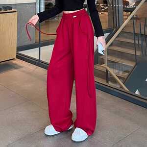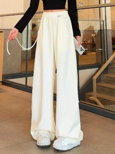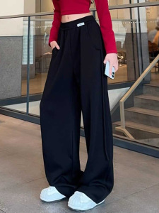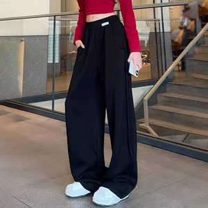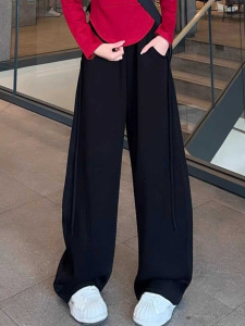 2025秋季新款设计感抽条香蕉裤高腰垂感显瘦大码休闲运动阔腿裤女