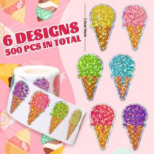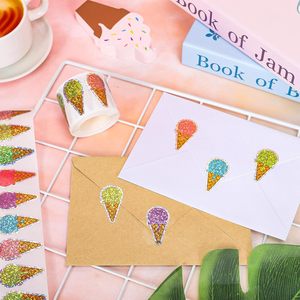 500贴/卷 跨境镭射雪糕镭射甜筒贴纸 卷装礼物装饰信封封口贴贴纸