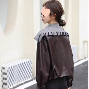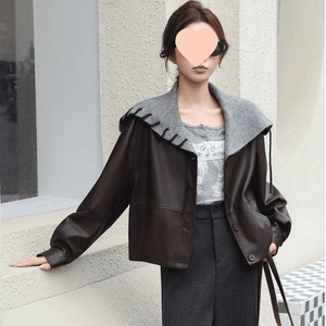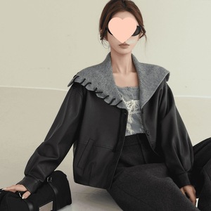 新品海军翻领皮衣外套2025新款设计设计黑色夹克上衣春秋款