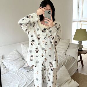 跨境外贸批发新款春秋季甜美卡通长袖睡衣女开衫圆领套装家居服