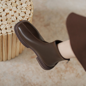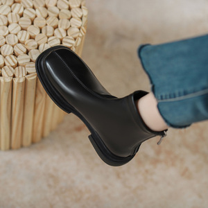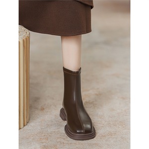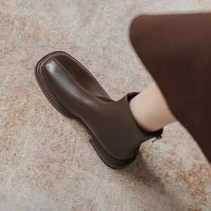真皮切尔西短靴女2025新款秋冬季加绒马丁靴女英伦风裸靴瘦瘦靴子