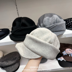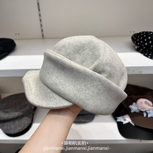 2025新款纯色软檐马术报童帽早秋百搭休闲通勤毛呢鸭舌八角帽子女