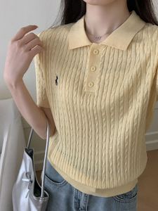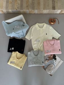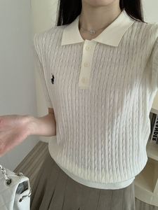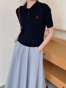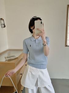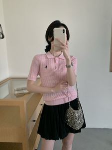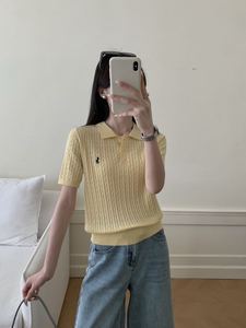 桑蚕丝+美丽诺羊毛短袖翻领气质薄款上衣女2025夏新款麻花针织衫