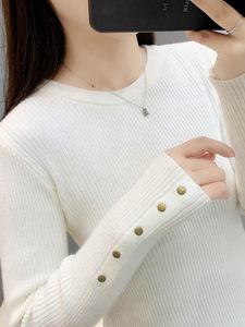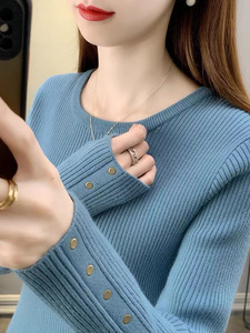 针织打底衫女内搭春秋新款韩版修身显瘦纯色圆领套头毛衣洋气上衣