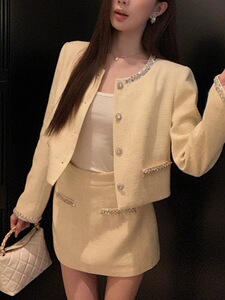 Chic小香风千金套装女秋季新款名媛气质修身优雅外套短裙
