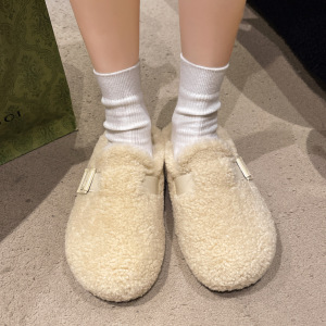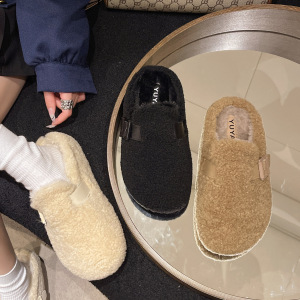 毛毛拖鞋女外穿2025新款秋冬一脚蹬时尚外出包头半拖棉拖鞋毛毛鞋