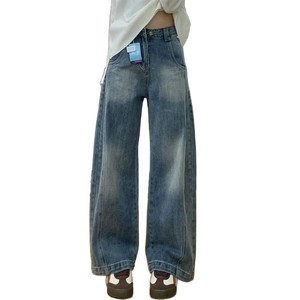 美式宽松水洗复古蓝阔腿牛仔裤女夏季新款设计感高腰显瘦拖地长裤