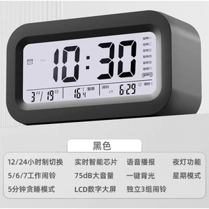 超大声语音报时器闹表床头学生充电闹钟充电电子夜光报