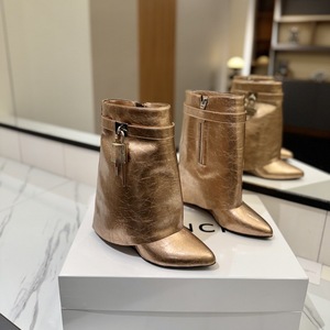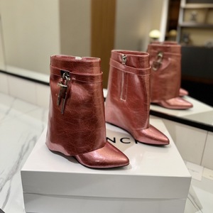 对版坡跟金属皮带锁扣裤管靴纪家时尚潮流侧拉链增高显瘦鲨鱼靴