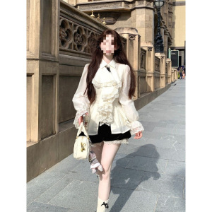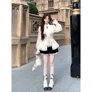 法式复古宫廷风蕾丝荷叶边衬衫春秋小众设计上衣+短裤套装2025