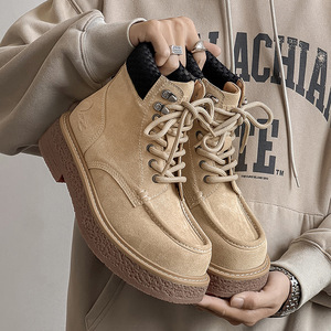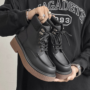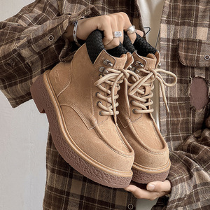 莆田鞋实体店专卖店品质真皮复古高帮乐福鞋男系带马丁靴工装短靴