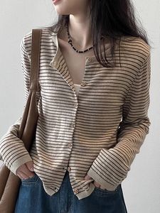 早秋春秋新款条纹针织开衫外套女设计感小众上衣外搭薄款圆领长袖