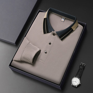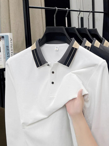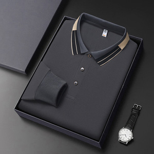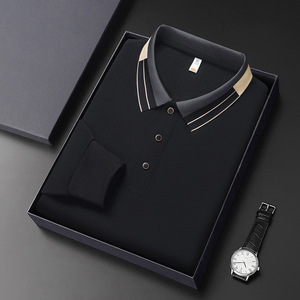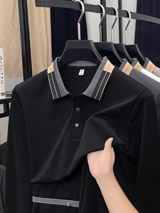 跨境外贸男士长袖纯色POLO衫春秋新款中年商务休闲百搭t恤上衣男