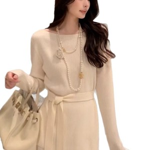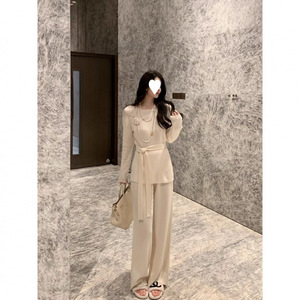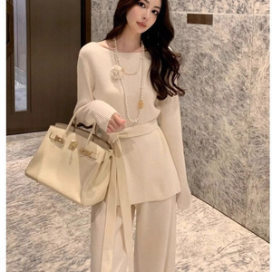 白色仿羊毛针织衫直筒裤两件时尚套装女修身气质新款名媛风气质女