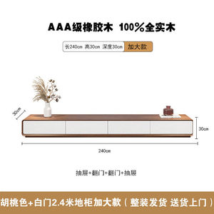 【全实木橡胶木】胡桃+白门 2.4米 加大款