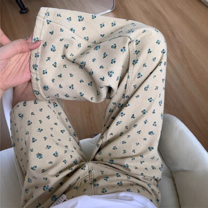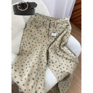 美式复古碎花阔腿牛仔裤女秋冬新款高街设计感高腰宽松垂感直筒裤
