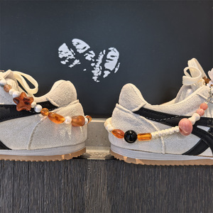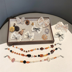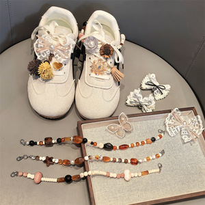 美拉德MIU系鞋花高级感串珠后跟链豹纹蕾丝蝴蝶结鞋带扣德训装饰