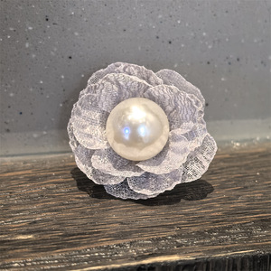 灰色珍珠蕾丝花朵鞋带扣