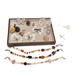 珍珠咖色飘带蕾丝蝴蝶结鞋带扣