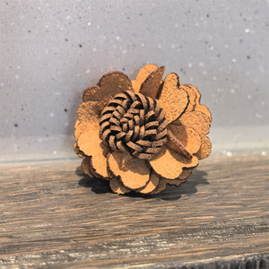 姜黄麂皮花朵鞋带扣