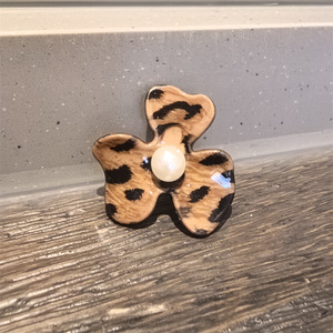 深咖豹纹花朵鞋带扣