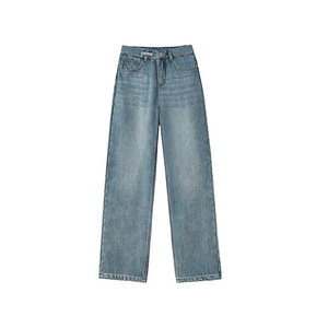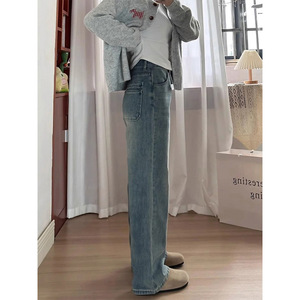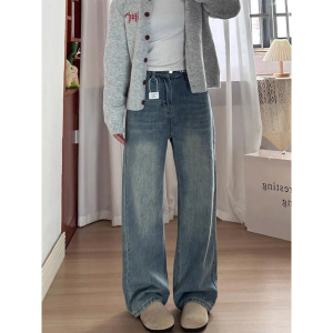2025新款大码复古蓝牛仔裤子女胖mm显瘦梨型身材高腰直筒阔腿裤