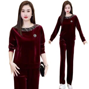 金丝绒刺绣套装女2025秋季新款洋气显瘦圆领套头休闲直筒裤两件套