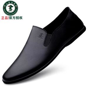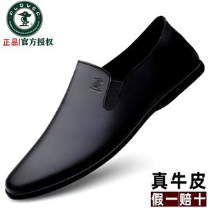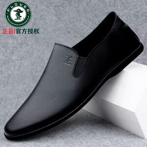 PLOVER夏季男士休闲皮鞋男一脚蹬男鞋透气男士真皮鞋百搭豆豆鞋软
