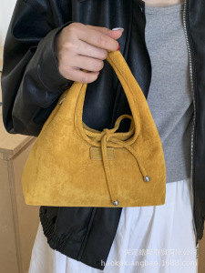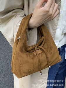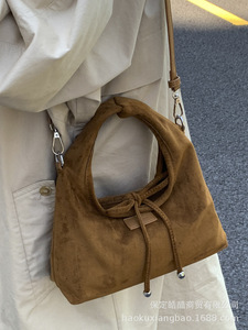 麂皮绒包包女款2025新款潮流行高级感复古单肩包大容量斜挎饺子包