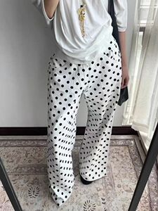 美式复古白色波点休闲裤子女秋季新款辣妹慵懒风松弛宽松阔腿长裤