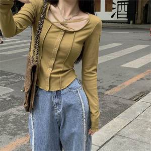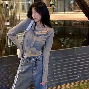 长袖上衣秋季女新款t恤ins小众设计感辣妹心机锁骨显瘦百搭打底衫