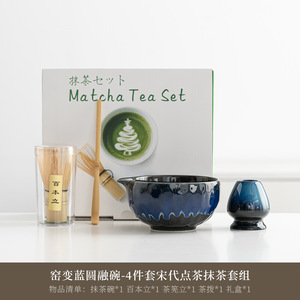 日式锤纹窑变陶瓷抹茶碗抹茶茶具工具八件套装茶筅百本立跨境专供