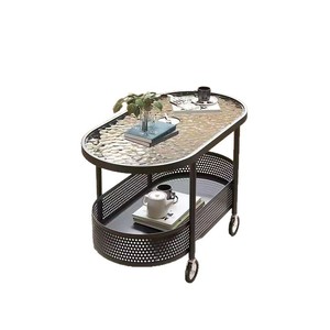 简约现代沙发小户型椭圆客厅奶油茶几侧边玻璃移动收纳小推车