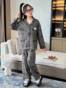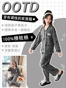 女童睡衣网红猫咪印花纯棉家居服套装25新款儿童长袖可外穿两件套