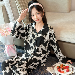2025女童秋季新款纯棉家居服长袖可外穿透气舒适水墨印花睡衣套装