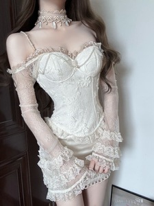 纯欲风蕾丝收腰抹胸网纱喇叭袖上衣早秋新款高腰显瘦半身裙两件套