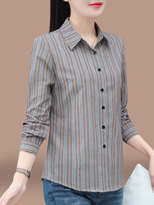 格子长袖衬衫女款春秋2025新款中年女装洋气减龄条纹衬衣纯棉上衣