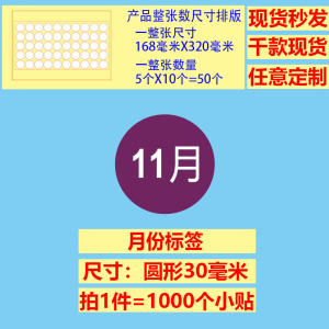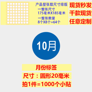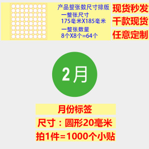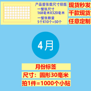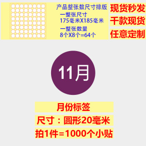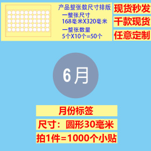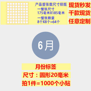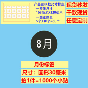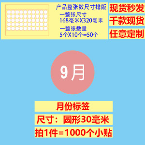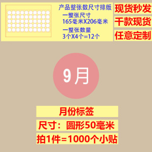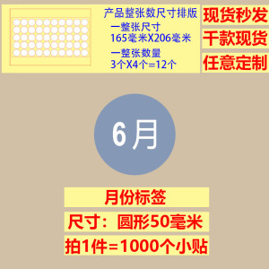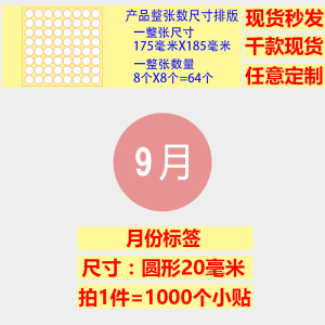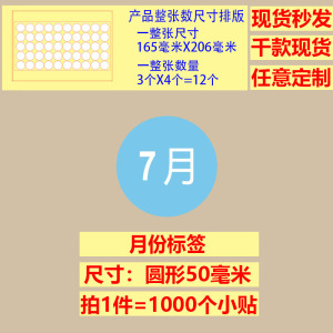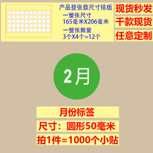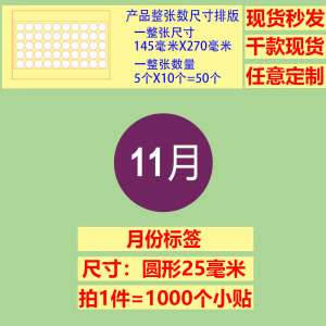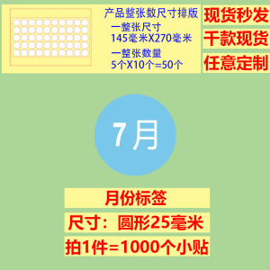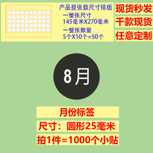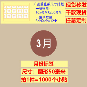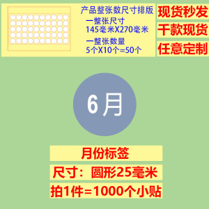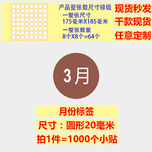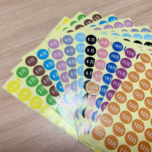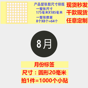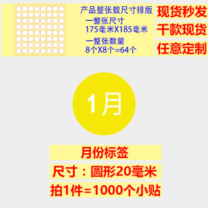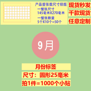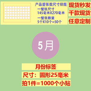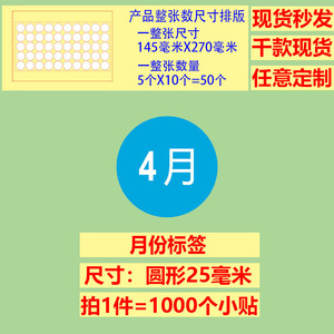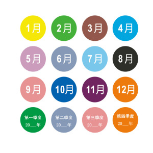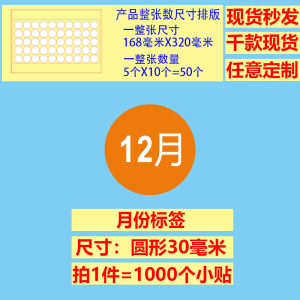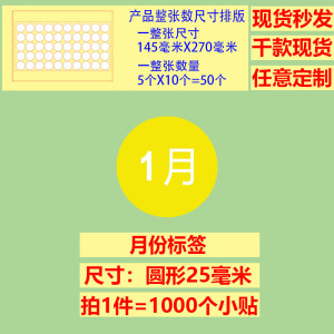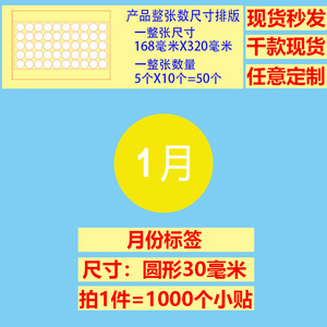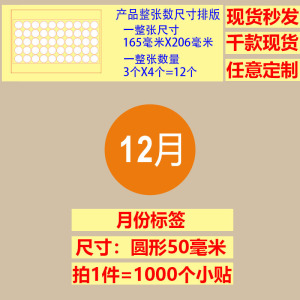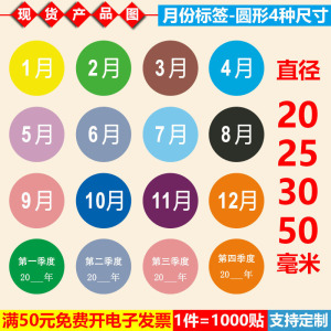 20-25-30-50MM圆形彩色月份数字贴纸 1-12个月数字分类标签不干胶